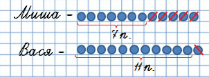 3. Миша решил 12 примеров, но допустил ошибки в 5 из них, а Вася допустил в этих же примерах только 1 ошибку. Сколько примеров решил правильно каж­дый из них?