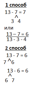 Сначала вычитаем столько, чтобы получить 10. Значит, из 13 нужно вычесть 3.
