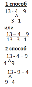 Объясни, как из 13 вычесть 4.