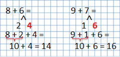 | 9 + 7 | 8 + 5 | 17 - 8 | 16 - 8 | 14 - 8 |