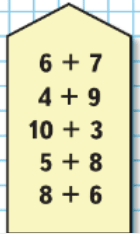 | 7 + 4 | 13 - 7 | 9 + 4 | 12 - 5 |