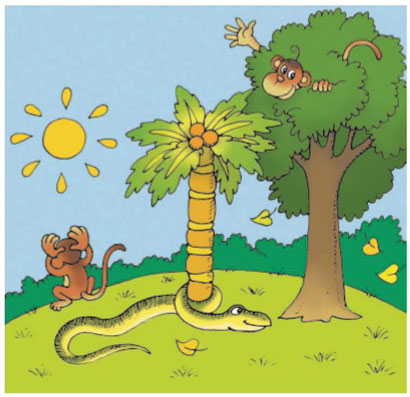 1. Играя в прятки со своей подругой, обезьянка пробежала 5 м по спине змеи и взобралась на самый верх пальмы, под которой отдыхала змея.