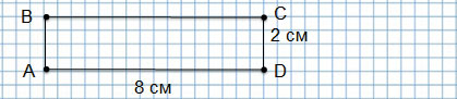 5. Начерти прямоугольник ABCD, длины сторон которого 8 см и 2 см. Найди его площадь.