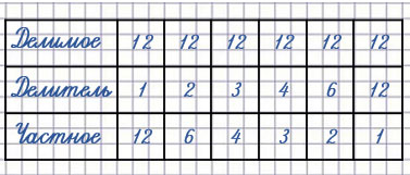 3. Заполни таблицу и расскажи, как при одном и том же делимом менялся делитель и как - частное.