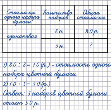 1) 8 одинаковых наборов цветной бумаги стоят 80 р. Сколько стоят 5 таких наборов?