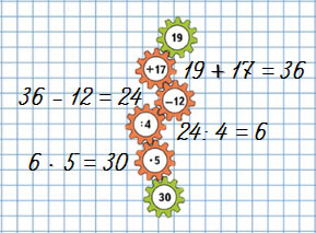 | 9 • 4 = 36 | 56 : 8 • 5 = 35 |