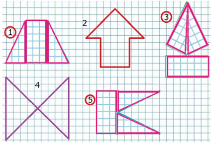 2) Запиши номера фигур, которые ты сможешь выложить, используя полученные части квадрата.