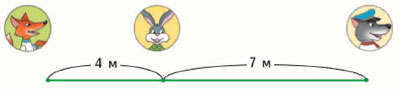 Выполни чертёж в тетради и определи расстояние между лисой и волком для этого случая.