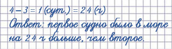 3. Первое рыбачье судно было в море четверо суток, а второе - трое суток. На сколько часов больше было в море первое судно, чем второе?