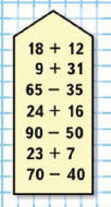 | 40 - 7 | 52 - 30 | 80 - 5 | 78 + 20 - 6 |
