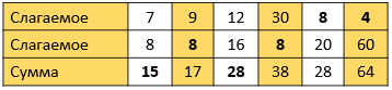 Повтори случаи табличного сложения.