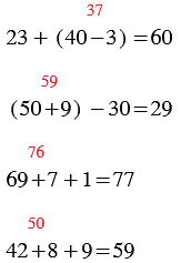 | 23 + (40 - 3) = 23 + 37 = 60 | 69 + 7 + 1 = (69 + 1) + 7 = 70 + 7 = 77 |