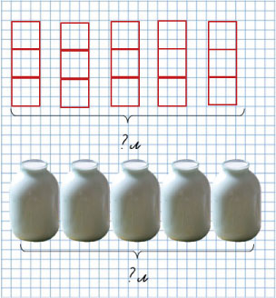 В одной банке 3 л молока. Сколько литров молока в пяти таких банках?