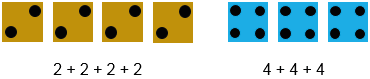 2 + 2 + 2 + 2 = 4 + 2 + 2 = 6 + 2 = 8
