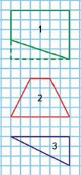 8. 1) Четырёхугольник 1 дополнили до прямоугольника. Начерти фигуры 2 и 3. Дополни каждую из них до прямоугольника.