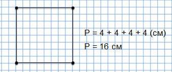 Р = 4 + 4 + 4 + 4 (см)