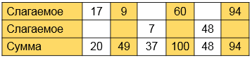 | 60 + х = 100 х = 100 - 60 х = 40 Проверка 60 + 40 = 100 100 = 100 | х + 48 = 48 х = 48 - 48 х = 0 Проверка 0 + 48 = 48 48 = 48 | 94 + х = 94 х = 94 - 94 х = 0 Проверка 94 + 0 = 94 94 = 94 |