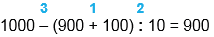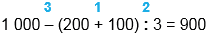 1 000 - (200 + 100) : 3 = 900