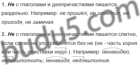 1. Как обычно пишется не с глаголами и деепричастиями? Запишите примеры.