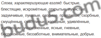Вы, конечно, знаете, что самая «говорящая» деталь на лице человека — его глаза. Прочитайте слова, часто используемые в речи при описании глаз. Выпишите из них те, которые характеризуют не сами глаза (их цвет, форму и т. д.), а взгляд.