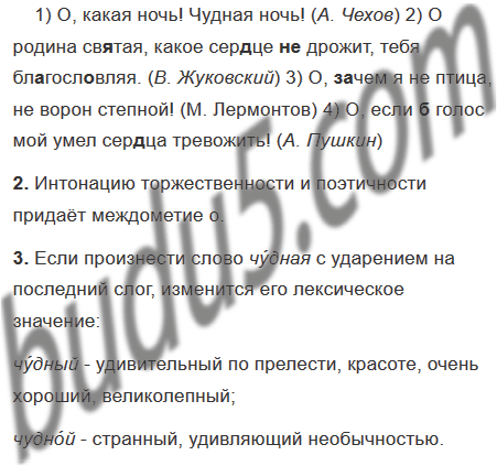 2. Выразительно прочитайте каждое предложение, соблюдая интонацию торжественности и поэтичности. Какое междометие усиливает это настроение?