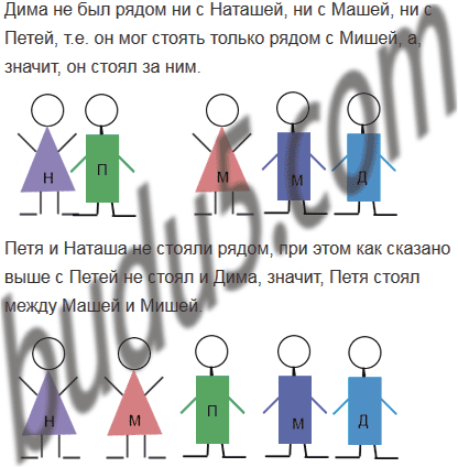 В очереди за билетами в цирк стояли Миша, Наташа, Петя, Дима и Маша. Маша купила билет раньше, чем Миша, но позже, чем Наташа. Петя и Наташа не стояли рядом, а Дима не был рядом ни с Наташей, ни с Машей, ни с Петей. Кто за кем стоял в очереди?