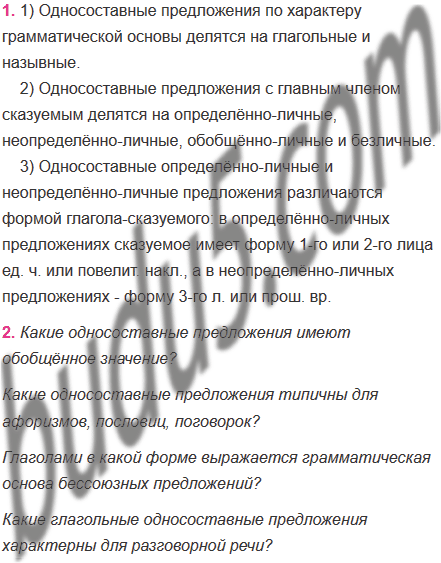 1) Какими бывают односоставные предложения по характеру грамматической основы?