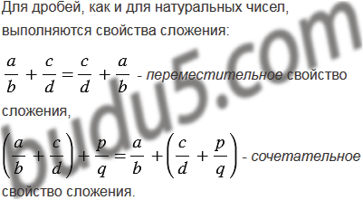 Какими свойствами обладает действие сложение дробей?