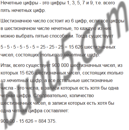 Сколько существует шестизначных чисел, в записи которых есть хотя бы одна четная цифра?