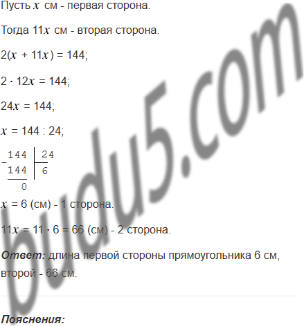 Одна из сторон прямоугольника в 11 раз меньше другой. Найдите стороны прямоугольника, если его периметр равен 144 см.