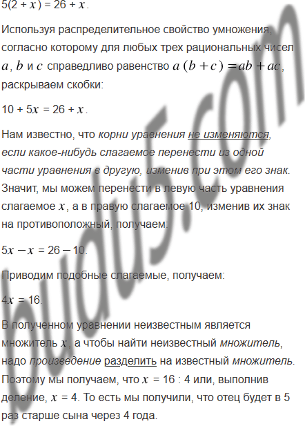 Сейчас отцу 26 лет, а его сыну - 2 года. Через сколько лет отец будет в 5 раз старше сына?