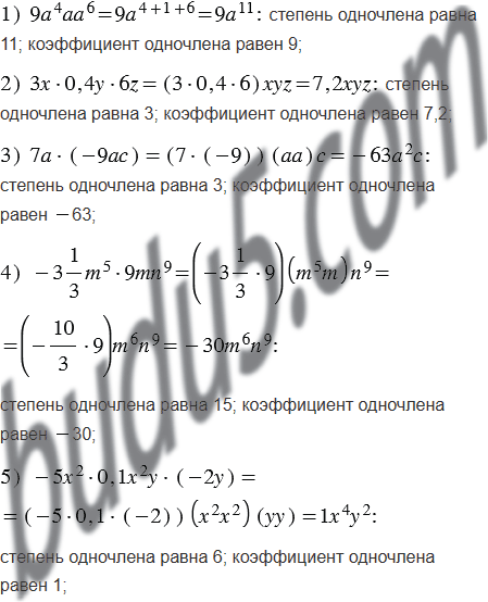 Приведите одночлен к стандартному виду, укажите его коэффициент и степень: