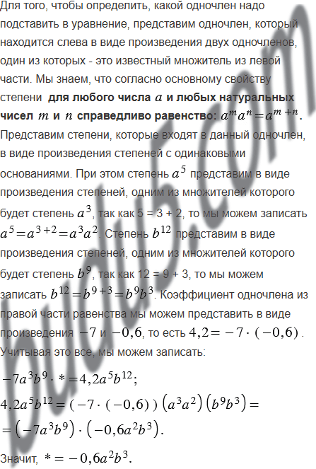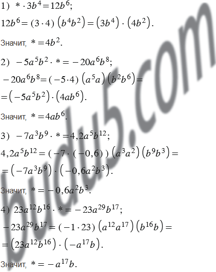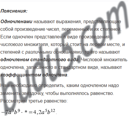 Каким одночленом надо заменить звёздочку, чтобы выполнялось равенство: