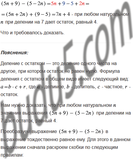 Докажите, что при любом натуральном значение выражения при делении на 7 дает остаток, равный 4.