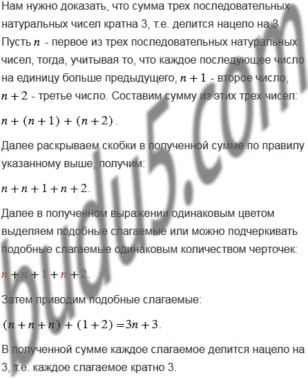 1) сумма трех последовательных натуральных чисел кратна 3;