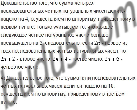 3) сумма четырех последовательных четных натуральных чисел делится нацело на 4;
