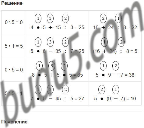| 5 : 5 | 7 • 5 - 45 : 5 | 5 • (9 - 7) |