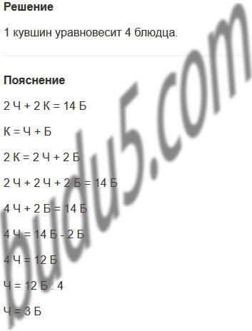 Задание № 11. Две чашки и два кувшина весят столько же, сколько 14 блюдец. Один кувшин весит столько, сколько одна чашка и одно блюдце. Сколько блюдец уравновесят один кувшин?