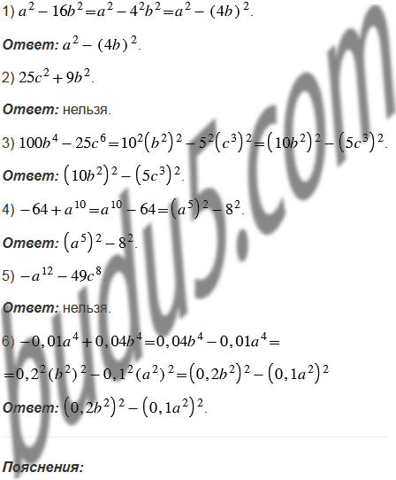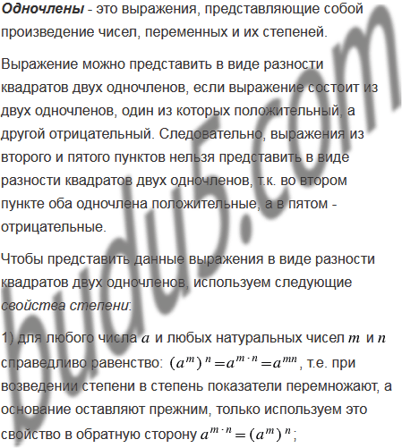Можно ли представить в виде разности квадратов двух одночленов выражение: