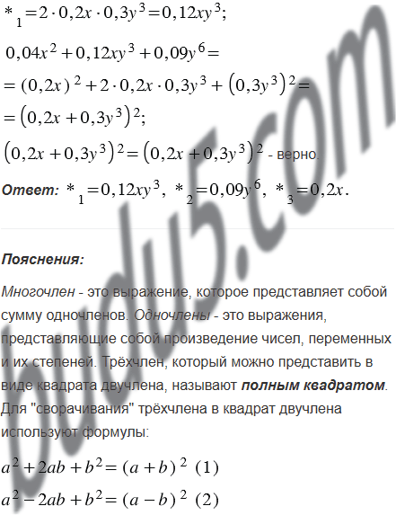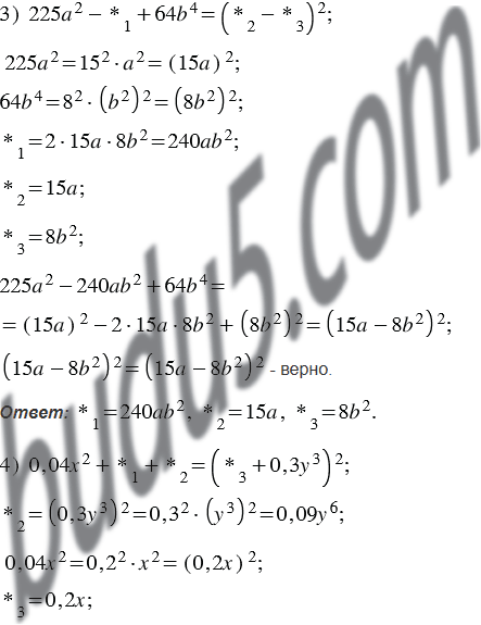 Замените звёздочки такими одночленами, чтобы выполнялось тождество: