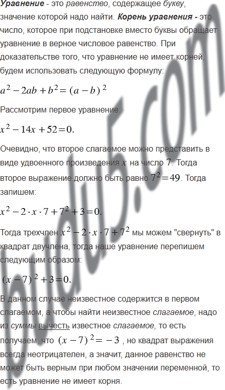Докажите, что уравнение не имеет корней: