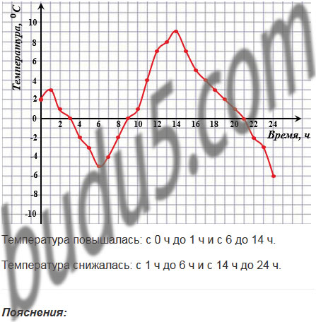 Пользуясь графиком, найдите, в течение какого времени температура повышалась и в течение какого времени снижалась.