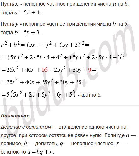 Остаток при делении числа на 5 равен 4, а остаток при делении на 5 числа равен 3. Докажите, что значение выражения кратно 5.