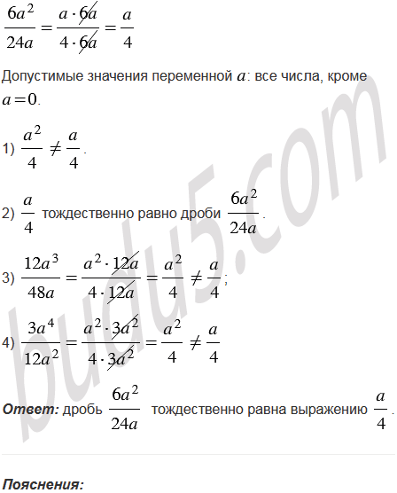 Какому из приведенных выражений тождественно равна дробь :