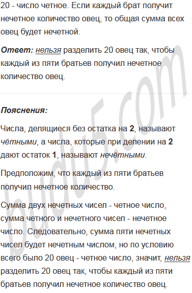 (Из болгарского фольклора.) Пятеро братьев хотели разделить 20 овец так, чтобы каждый из них получил нечетное количество овец. Возможно ли это?
