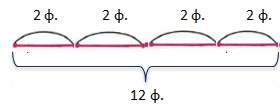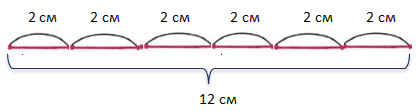 2) Отрезок длиной 12 см разделили на части, по 2 см каждая. Сколько получилось частей?